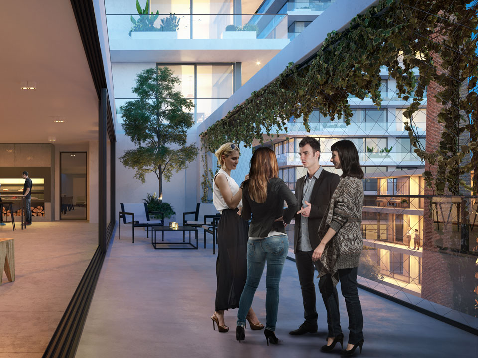 El pasaje funciona como núcleo de acceso a los diferentes espacios privados y comunes, haciendo de Canvas Barracas un proyecto único y diferente. En Canvas Barracas, los accesos privados y exclusivos permiten combinar los diferentes espacios, que se distribuyen equilibradamente a lo largo del proyecto. Salón Fitness Equipado, Salón General de usos Múltiples, Salón de usos Múltiples para adultos + Piscina de 20m, Solarium Equipado y terrazas, Parrillas Interiores.