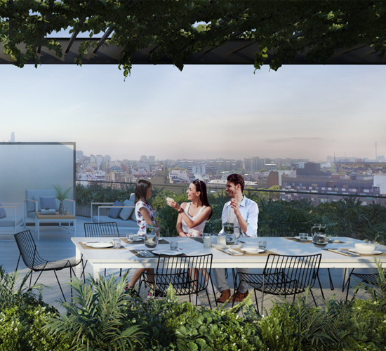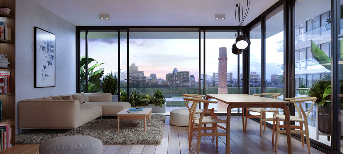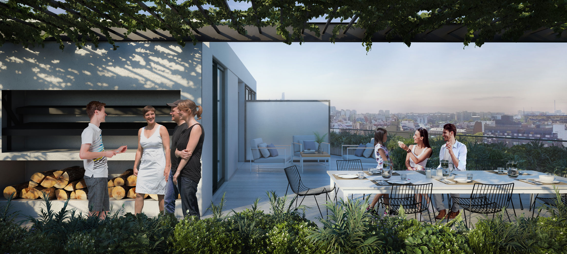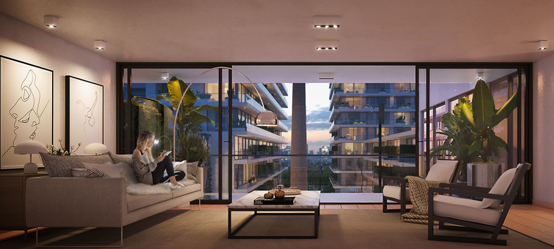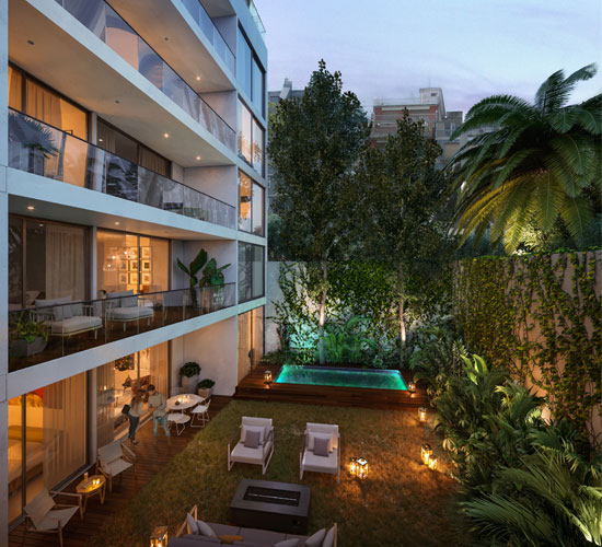 El pasaje funciona como núcleo de acceso a los diferentes espacios privados y comunes, haciendo de Canvas Barracas un proyecto único y diferente.