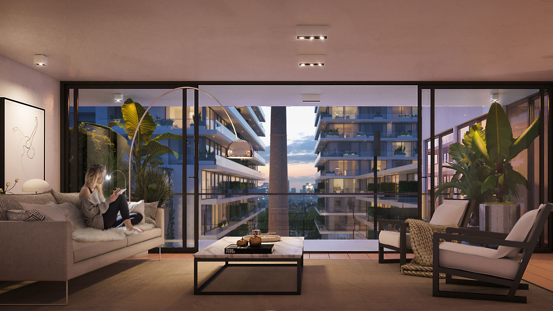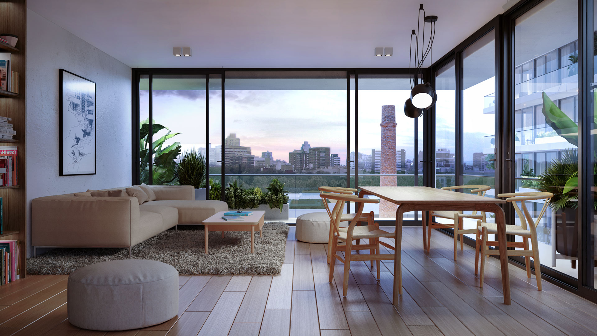 Canvas tiene dada su disposición las unidades de mayor perímetro vidriado de la ciudad por metro cuadrado de espacio utilizable. Sus balcones corridos generan visuales de líneas rectas y amplias, que invitan a relajarnos.