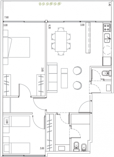 3 dormitorios / 2 baños / living / comedor / cocina / balcón
