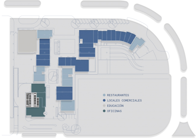 Optimiza tu día, expresa lo que eres, date un respiro, recarga energía a la hora de la comida en el mercado gastronómico con más de 25 propuestas vanguardistas para tu paladar. Disfruta de increíbles áreas verdes dónde podrás relajarte y descansar rodeado de naturaleza.