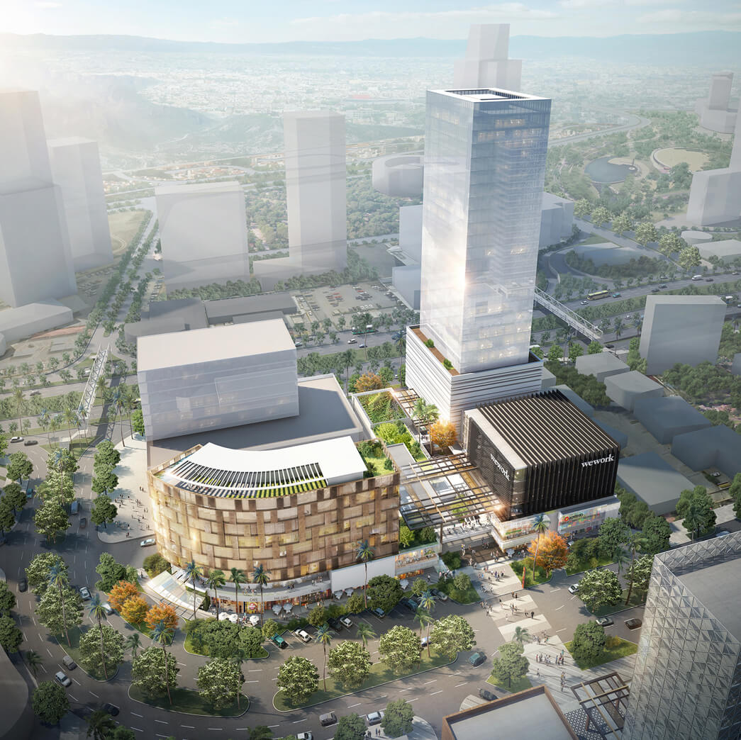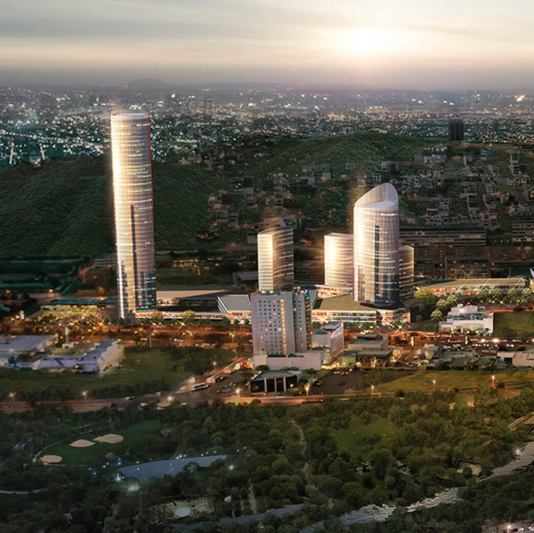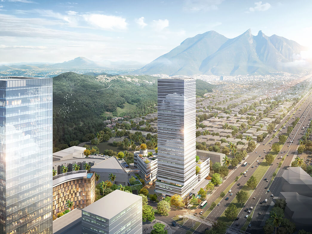 La primera de cinco torres de oficinas, pensadas para enmarcar todo el conjunto urbano. Cuenta con 30 pisos y dispondrá de más de 18,000 m² para su venta o renta.