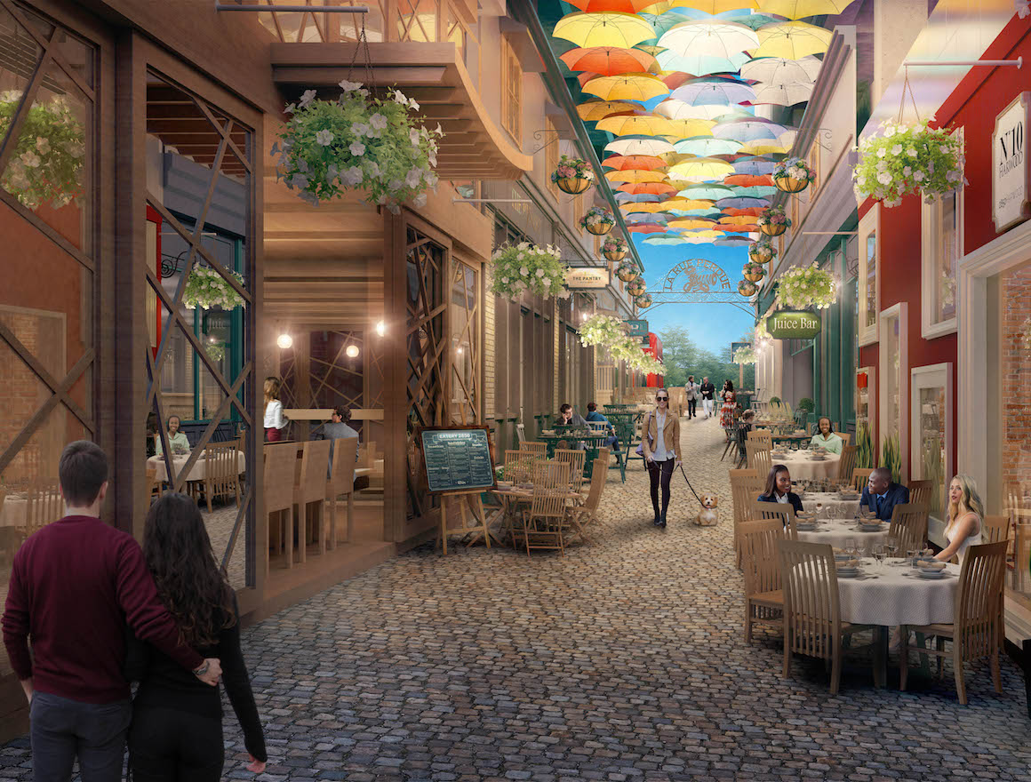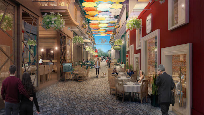 Designed by Dallas-based HDF, the Class AA office tower features 22 floors of office, 14,000 square feet of retail and restaurant space, and private green roof gardens with expansive views. La Rue Perdue is a European cobblestone alleyway at the base of the building which will feature seven boutique restaurant and retail concepts.