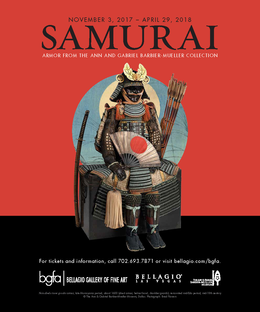 There’s a brand new attraction at the luxurious Bellagio Resort & Casino in Las Vegas. Samurai: Armor from the Ann and Gabriel Barbier-Mueller Collection is on view now at the Bellagio Gallery of Fine Art. More than 50 pieces of armor are showcased in this family-friendly exhibition, including full suits of armor and even life-size samurai riding their armored horses. Samurai runs through April 29, 2018.